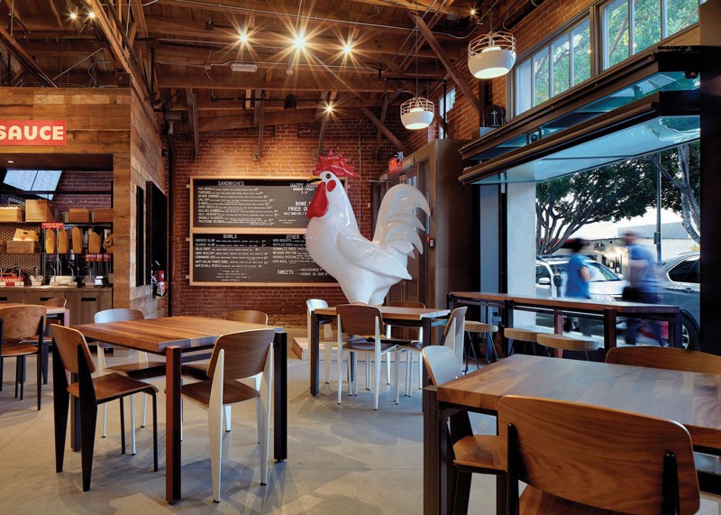 For The Crack Shack’s Pasadena, Calif., location, original features of the building — including 93-year-old brick and exposed boat truss — were restored and highlighted to complement the chain’s whimsical, rustic farmhouse aesthetic. Finishes include reclaimed wood, corrugated metal, blackened steel and polished concrete flooring. The judges thought the “design is whimsical, fun and inviting, especially for limited service.” They also noted the “good use of textures and materiality.” The design didn’t overlook functionality either as the judges noted that the “layout really works.”