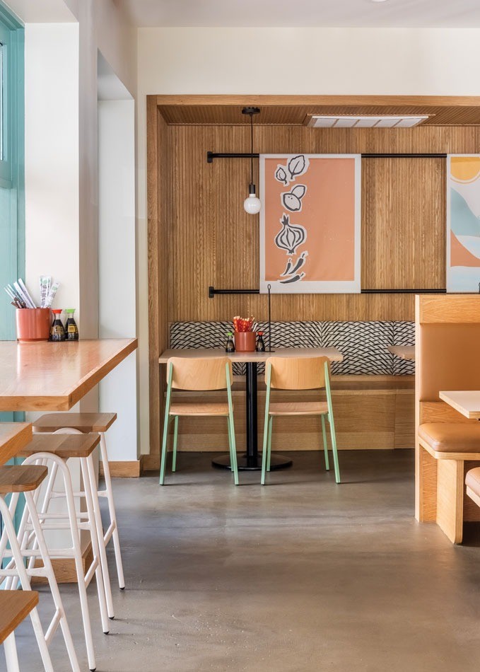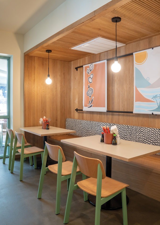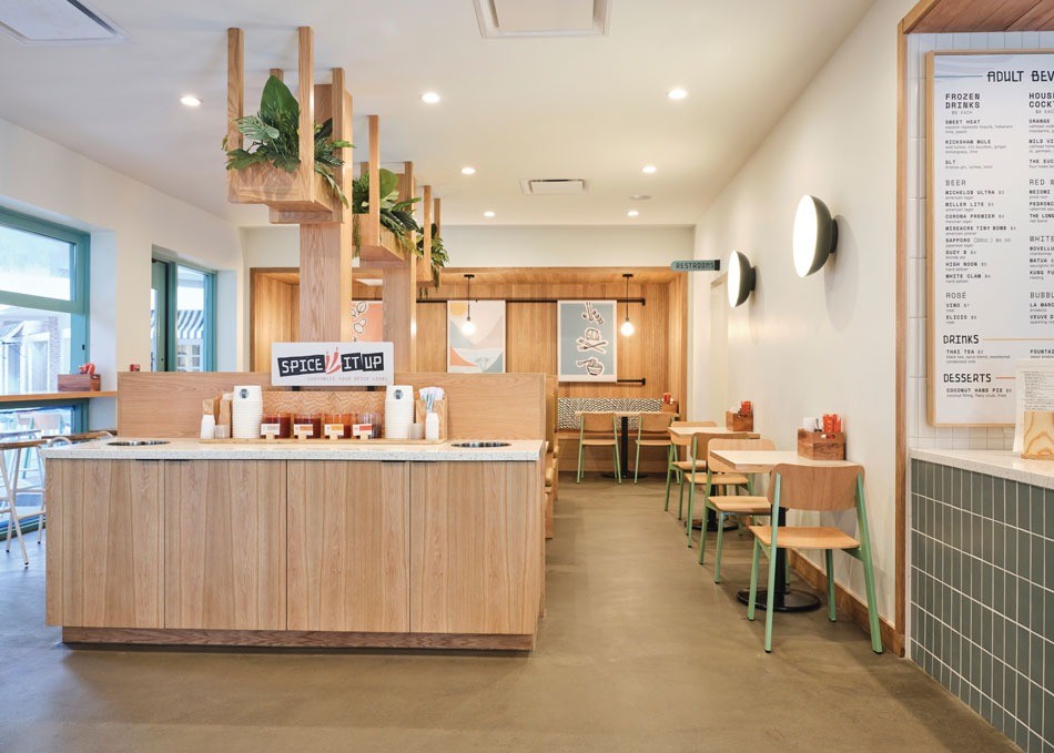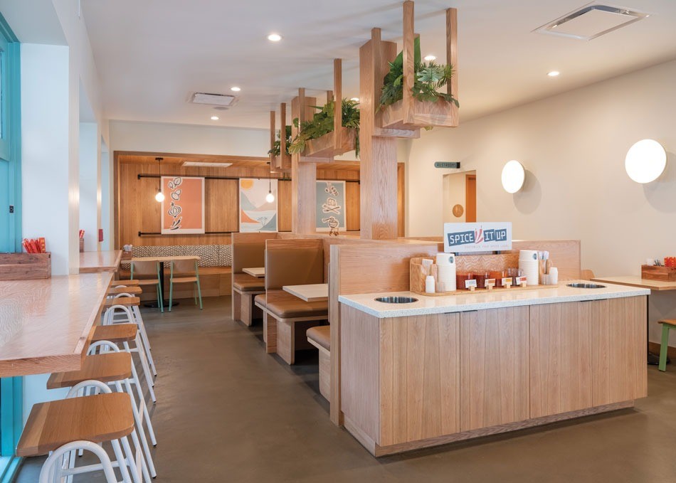 The goal behind Tuk Tuk Boom was to create a fresh, modern take on fast-casual Thai by designing a bright, lively space that mixes the colors found in curries, peppers and herbs with a natural wood and crisp white backdrop. The design team wanted to create both a takeout-friendly environment and one that would make dine-in guests want to linger. The judges felt it they did a great job of meeting their goals.