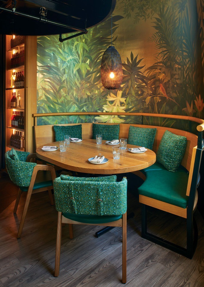 This renovation celebrates the Mexican gastrolounge’s new experiential dining menu, where guests can enjoy unlimited plates for a flat price. It also had to serve as a prototype for new units going forward. The design draws inspiration from the adventurous dining format and was conceptualized as dining at the edge of the jungles of Tulum, Mexico.