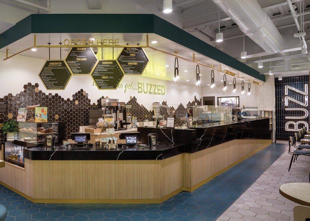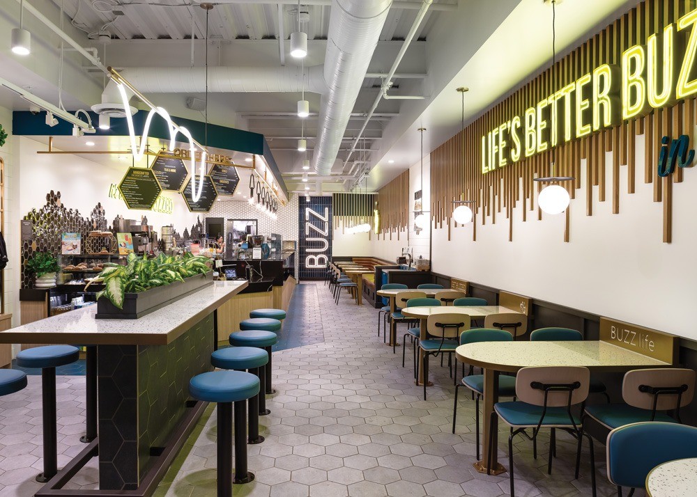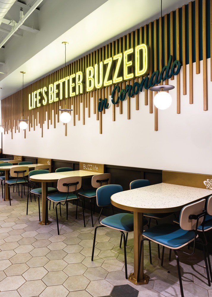 The playful design of this Better Buzz Coffee location resonates strongly with the brand’s identity. The judges felt it was “a nice transformation” project (it was previously a bagel shop) with a “clean and modern interior, appropriate for the brand.”