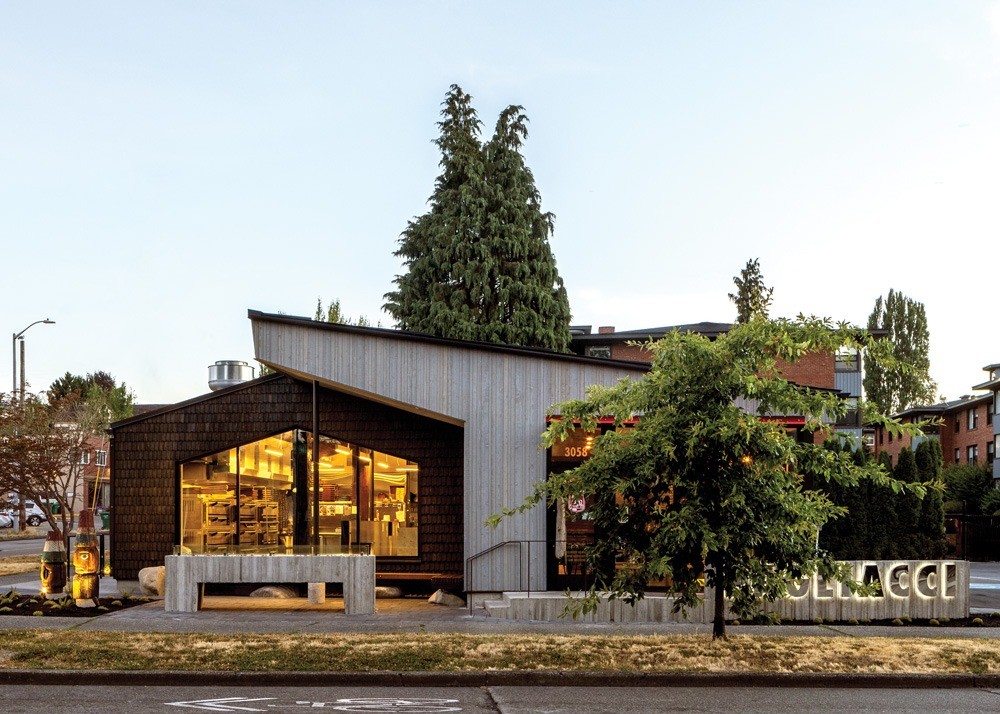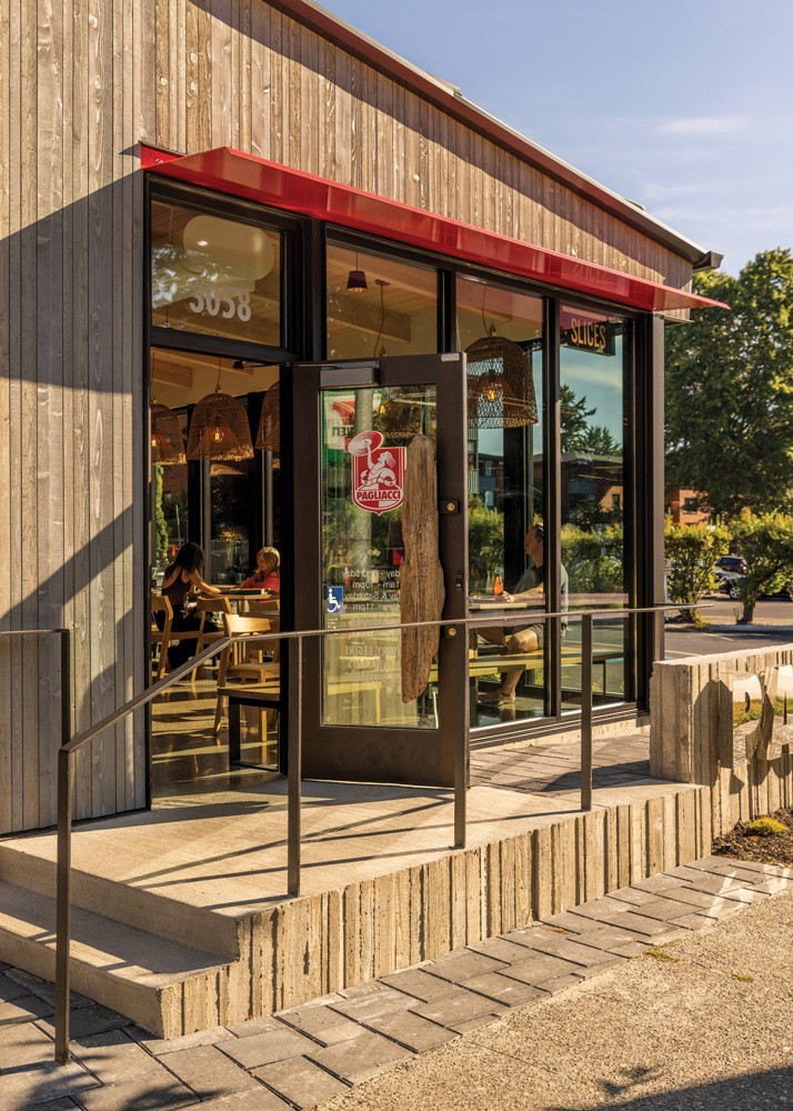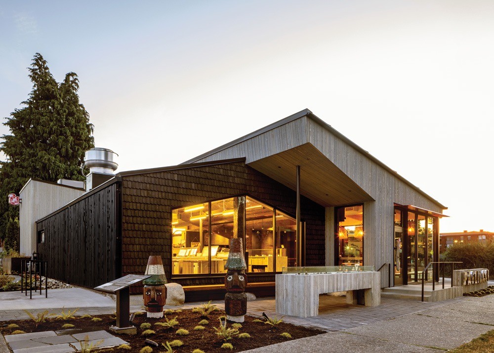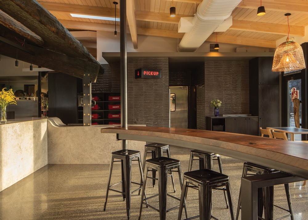 The operator and design team saw this project as an opportunity to open a dialogue about the building’s history — a Native American Haida house structure — while creating a new home for Pagliacci Pizza. The project team consulted with the Headwater People who provided insights into preserving the history of the building. A 1,300-square-foot addition was thoughtfully designed and constructed along the building’s original lines and incorporates materials like cedar siding that were used by indigenous peoples. Of course, the team also had to ensure the interior was branded appropriately for Pagliacci and outfitted for a busy fast-casual pizza operation.