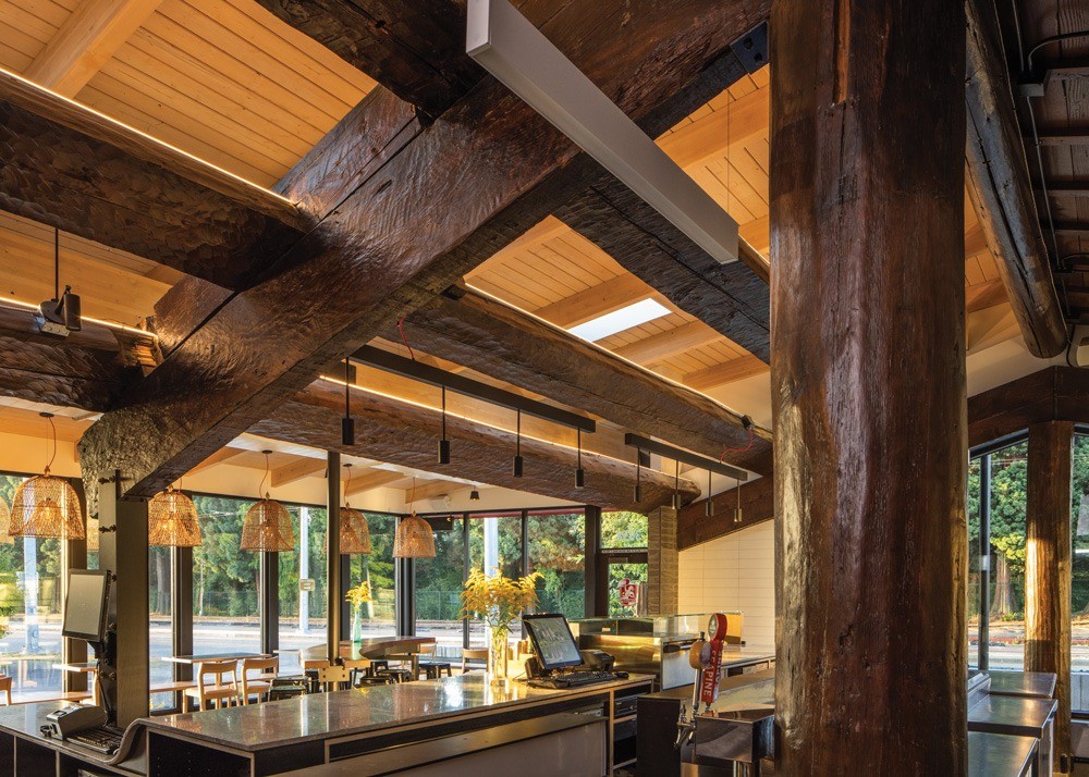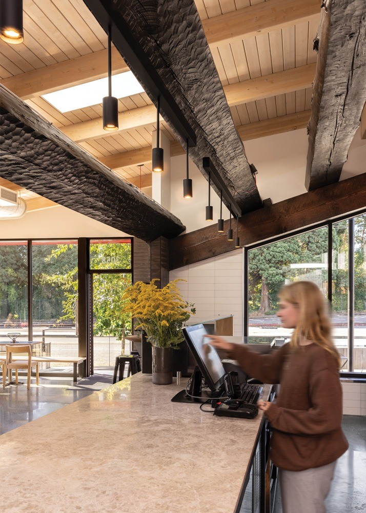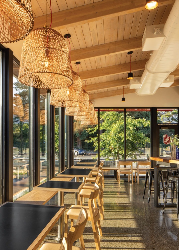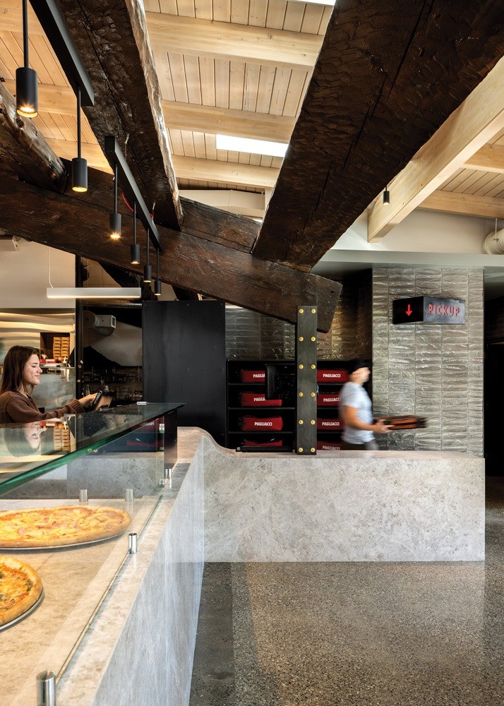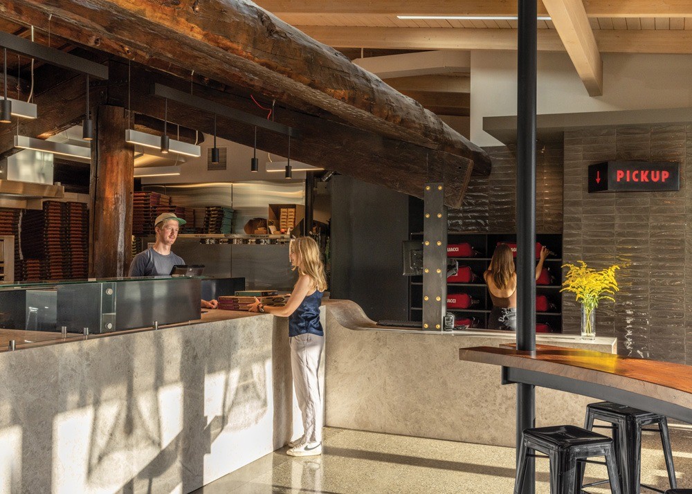 The operator and design team saw this project as an opportunity to open a dialogue about the building’s history — a Native American Haida house structure — while creating a new home for Pagliacci Pizza. The project team consulted with the Headwater People who provided insights into preserving the history of the building. A 1,300-square-foot addition was thoughtfully designed and constructed along the building’s original lines and incorporates materials like cedar siding that were used by indigenous peoples. Of course, the team also had to ensure the interior was branded appropriately for Pagliacci and outfitted for a busy fast-casual pizza operation.
