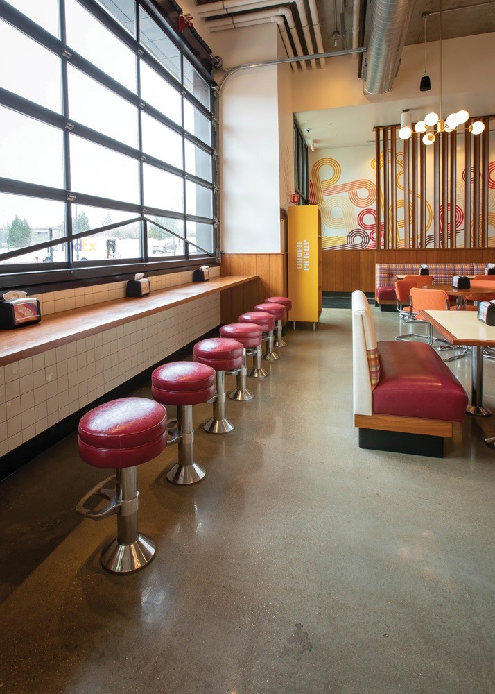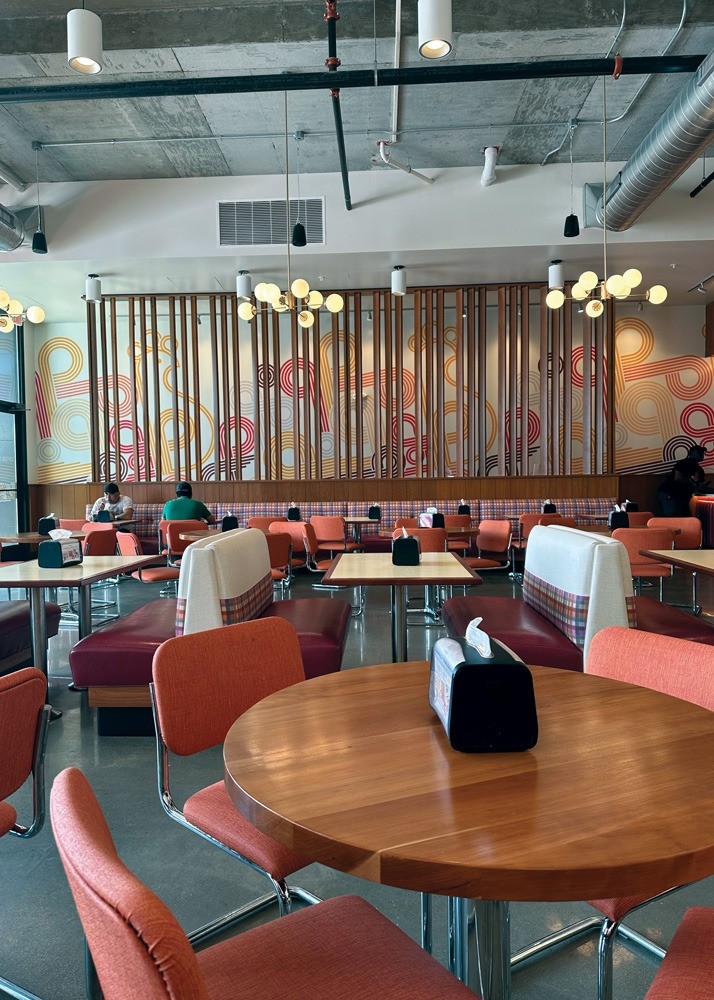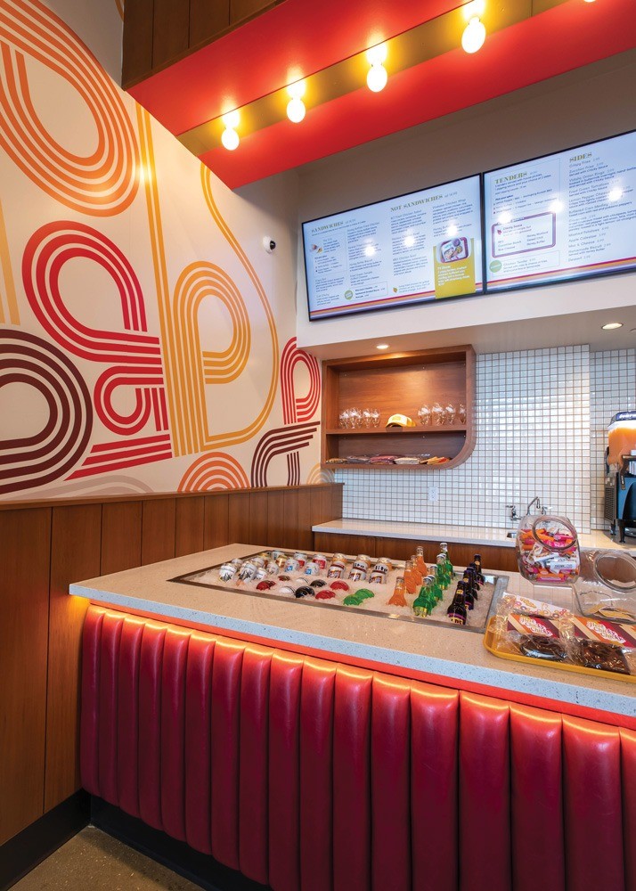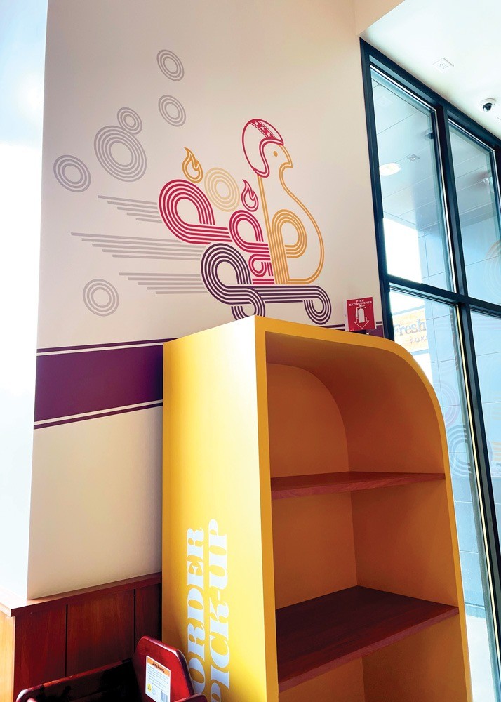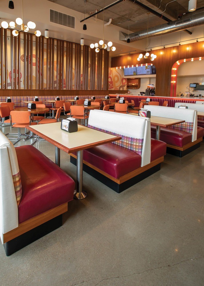 However retro the style, the layout is modern with clearly defined traffic flow for operational efficiencies. The judges thought “it was a fresh approach, fun and playful.” And they liked that “it was a new twist on chicken.”