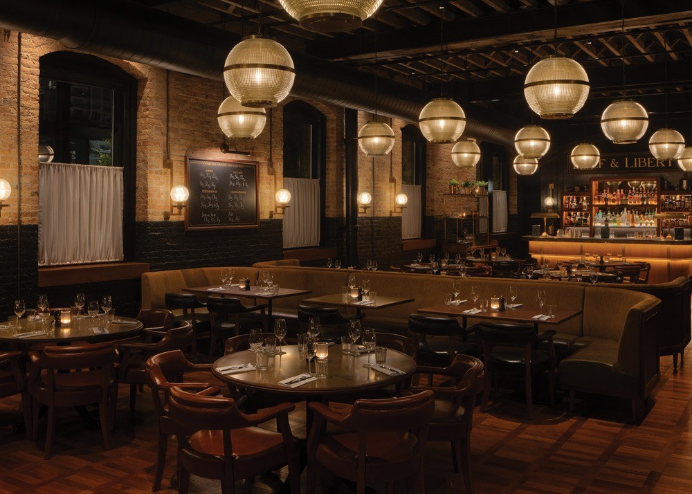 This 16,500-square-foot London-based steakhouse’s Chicago outpost is in an old cable car powerhouse building that dates back to 1886, and its design draws inspiration from the building’s architecture and the golden age of travel (1880-1939). Design elements include patinated brass, tumbled parquet flooring, beveled glass, dark glossy walls, and twinkling glass shades. Creating multiple event spaces was key to the design, and the restaurant includes five dining areas spread over three floors. Each space has its own distinct elements but all tie back to the main themes and aesthetics. The judges couldn’t resist the ambiance and strong design language, noting “we like it because of how it makes you feel.”