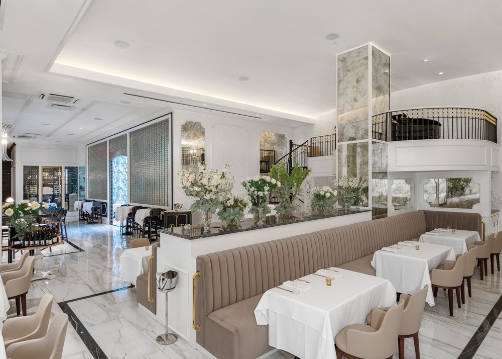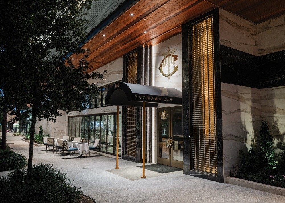 The 5,500-square-foot Turner’s Cut offers rare cuts of meat with white-glove service and daily live music. Venetian glass brick adorns the façade and dome awning, a first of its kind in Houston, per the project team. The design goal was Gilded Age luxury, and no detail was spared. Design elements include a custom Czech crystal wall that adorns the bar, a barrel vault ceiling caps the formal dining room, pearlized white leather banquettes line the perimeter, and a customized spiral stair takes guests to the mezzanine that hosts a three-piece band and grand piano. The judges liked that “it’s a very curated space” with “bespoke details.” They felt “there’s a strong architectural language” that carries the experiential design from start to finish.