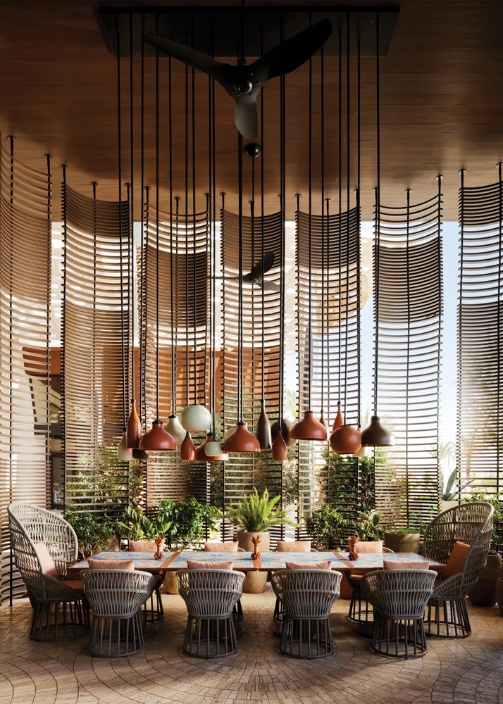 Nestled within the new Durango Resort and Casino, this 6,010-square-foot restaurant seats 224 and seeks to whisk patrons away to a Mexican paradise. At the heart of the restaurant is the bar and a mesmerizing floor-to-ceiling bottle display that is shaped and tiered like an agave cane with a ceiling element that evokes a tequila bottle. Warm beige and sandy hues dominate the dining area and complement soft plaster finishes and intricate wood carvings. The patio features 11-foot-tall rope chandeliers and bespoke banquettes. The judges like how the project team “integrated the tequila bottle into the design itself, which is stunning.” The judges also liked that the design “took traditional Mexican items and presented them in a sophisticated way.”
