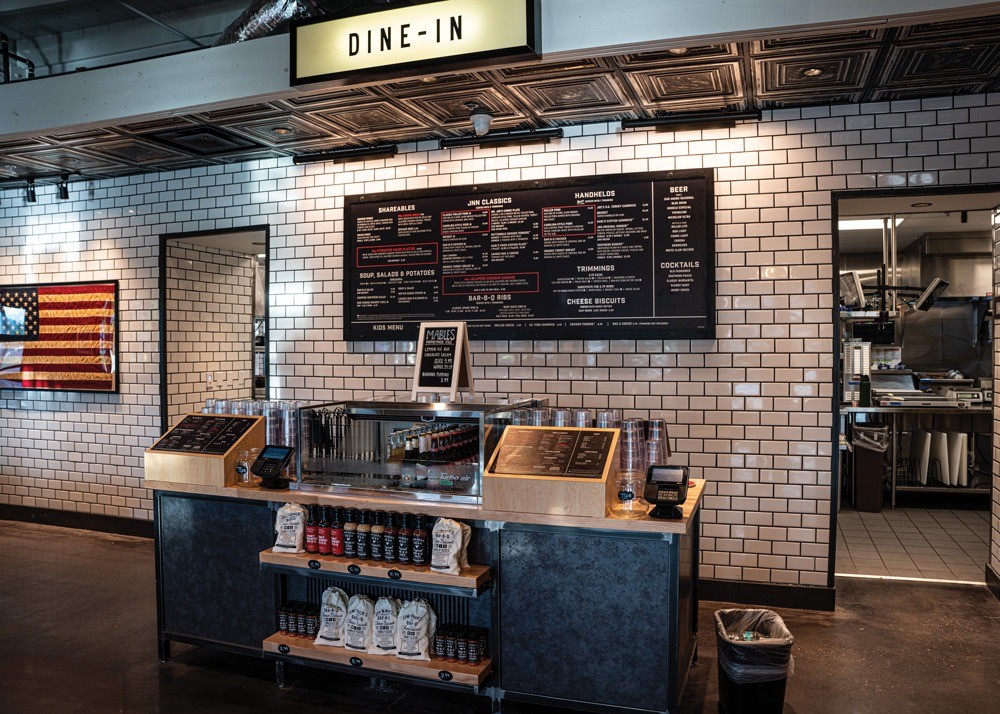 This 4,225-square-foot BBQ restaurant with a 1,344-square-foot patio is a fast-casual concept with a unique service style. The previous iteration had been full-service, but this new prototype offers a mix of on-premises dining with fast-casual ordering or full-service ordering at the bar. It also has a dedicated takeout area and a two-lane drive-thru to maximize throughput. Inside, guests can see the meat being smoked and even speak with the on-site pit master. One of the key goals was to increase speed of service and that meant overhauling the kitchen design to fit the new service style. The judges “loved the exterior” and felt the “buildout was very efficient.” They also “liked the design intent, and that they had a nice visual piece with the smoker.”