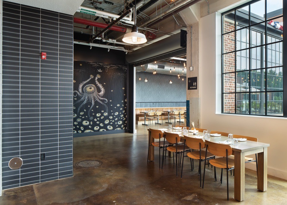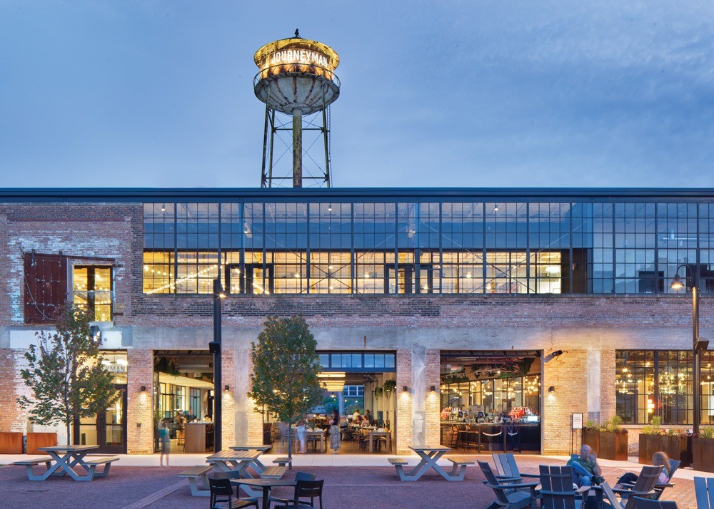 In this adaptive reuse project, the team preserved the former ANCO manufacturing plant and transformed it into a 140,000-square-foot destination that features a whiskey garden, a restaurant, a brewery and event spaces that blend seamlessly together.