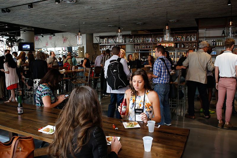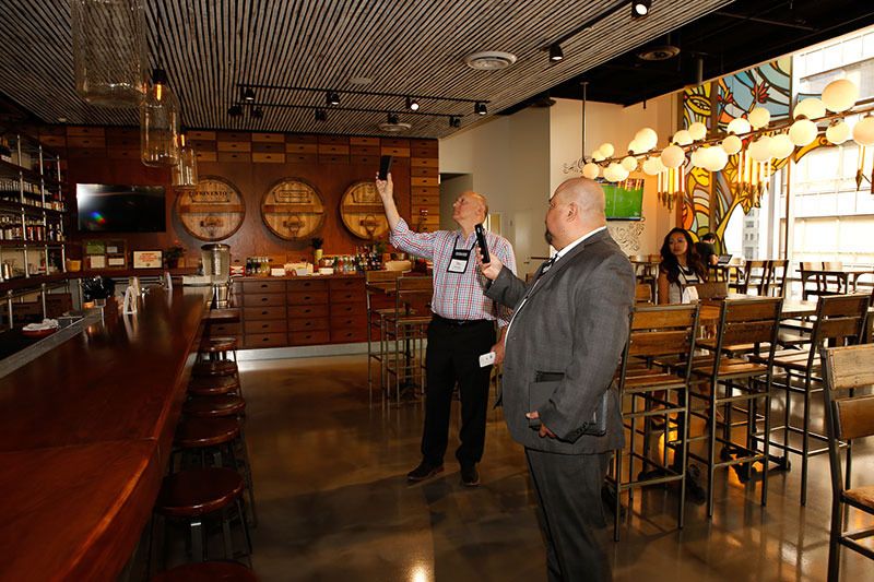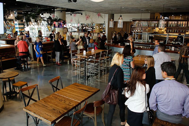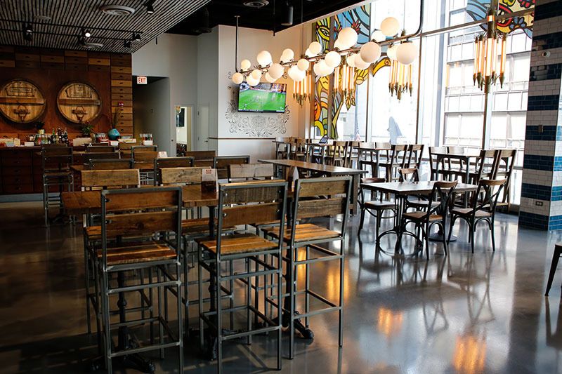 The Latin-themed food hall by Robert Sandoval features 12 stations or market-like stalls offering Spanish-inspired mariscos (seafood), Mexican tortas and tacos, Peruvian-style stir fry and ceviche, salads and even burgers. The 26,000-square-foot space also includes a full-service restaurant, Pata Negra, serving tapas and wine; a full bar offering handcrafted pisco, rum and tequila cocktails; and a separate seating area with windows overlooking Chicago’s work-central Loop and nearby theatre district. At the front, a small retail section offers gourmet Latin food items, nostalgic candies and cookbooks as well as everything to make an authentic Spanish paella at home. The space also includes a culinary center with chef demos and other special events. Downstairs, Loncheria, a quick-serve outlet just steps away from an L train platform, offers specialty coffee and breakfast in the morning as well as whole rotisserie chickens to-go for lunch and dinner.