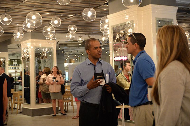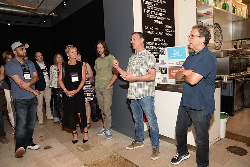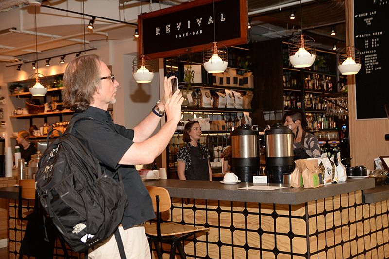 Operated by Chicago hospitality collective 16” On Center (Longman and Eagle, Dusek’s, MONEYGUN, Saint Lou’s Assembly, The Promontory and more) Revival Food Hall is an all-local dining concept spotlighting the best of Chicago’s acclaimed culinary scene under one roof. The massive, 24,000 square foot venue is located in the heart of The Loop on the ground floor of The National—a 20-story restoration of a historic 1907 Daniel Burnham-designed building. This collaborative project opened in summer 2016, and boasts 15 fast-casual stalls featuring many of Chicago’s favorite neighborhood restaurants in a grab-and-go setting, plus a handful of all-new, quick-serve concepts debuting from several acclaimed Chicago chefs. In addition, 16” On Center and James Beard award-winning pastry chef Mindy Segal operate a multi-roaster coffee shop, full bar and bakery, giving equal attention to both the coffee and cocktail programs. The 16” On Center space also includes a record store and reading corner curated by Chicago’s Curbside Splendor—featuring books and records for retail sale by small, independent record labels and publishers from Chicago and the greater Midwest. In addition, much of the food hall’s furniture, fixtures, metalwork and more is crafted by Chicago artisans such as Dock 6 Collective—a group of independent furniture and cabinet makers. The signature feature of this urban, modern space is the massive communal table smack dab in the middle of the venue.
