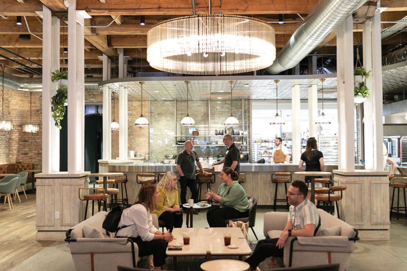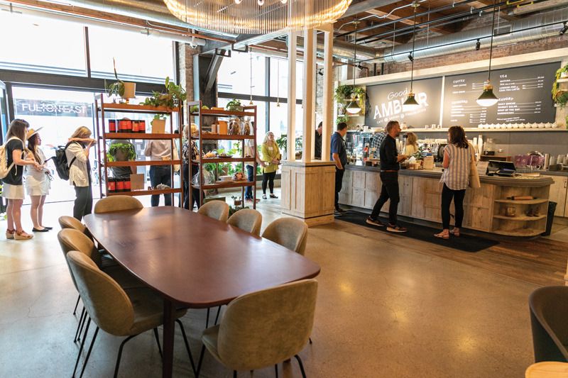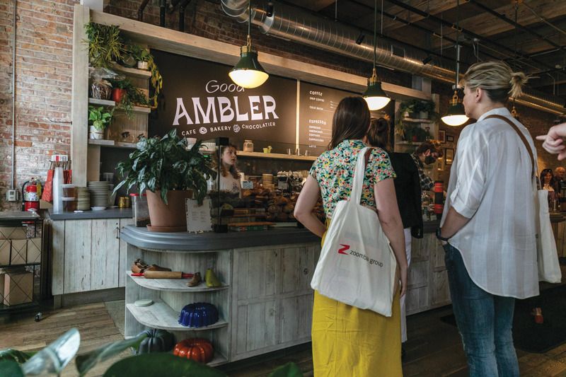 Multiconcept operator 16” on Center’s Good Ambler is a cafe, bakery and chocolatier located at the base of Mondelez International headquarters, makers of Oreo cookies and other snack foods. Open to the public, Good Ambler offers sweet and savory snacks and a full coffee program. Conceptually, Mondelez wanted a space that would bring their team closer to consumers. Operationally, this project capitalizes on the popularity of limited hours and breakfast-lunch daypart trends.