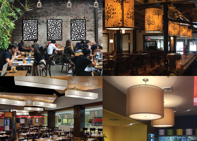 - American made, custom laser-cut panels, with or without embedded LED backlighting, provide distinctive wall decor for restaurant spaces. Lite Tops, a division of lighting fixture manufacturer Cutting Edge Industries, custom cuts a variety of materials offering a wide selection of finishes suited to any aesthetic and brand style. Our pulsed laser technology allows for accurate and intricate cutting of materials ranging from stainless steel, brass and aluminum to wood, acrylic and fabric. Choose from a wide selection of patterns and sizes, or your own custom design or logo.