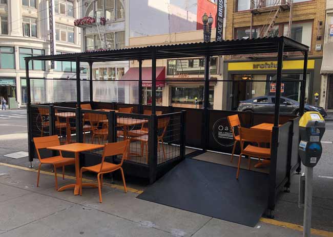 - MODSTREET provides parklets and other modular products for outside guest service seating on sidewalks or streets. The design allows for easy installation, minimal maintenance and long-term durability. Customizable in size from 10 to 40 feet, available with canopy or other roofing options and made of steel, aluminum, wood or composite materials.