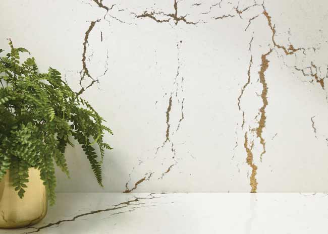 - The Alloy Collection is an American-made quartz surface collection that captures the reflectivity and luster of brass and steel. Three different surface characteristics — smooth, sculpted and satin ridge — are available with veining that jets against white marbled backdrops. All Cambria quartz products are nonabsorbent and resistant to scratches, chips and stains.