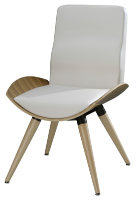 The Smile Chair, created by Kay Lang, has a built-in lumbar support. The wood shell curves around the upholstered seat to convey how this stylishly simple chair got its name.Q: How are you working with designers or restaurant concepts to customize a unique solution?