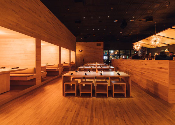 A warm and natural aesthetic welcomes guests to the signature restaurant space inside the Seattle Convention Center, Bombo Kitchen and Bar.